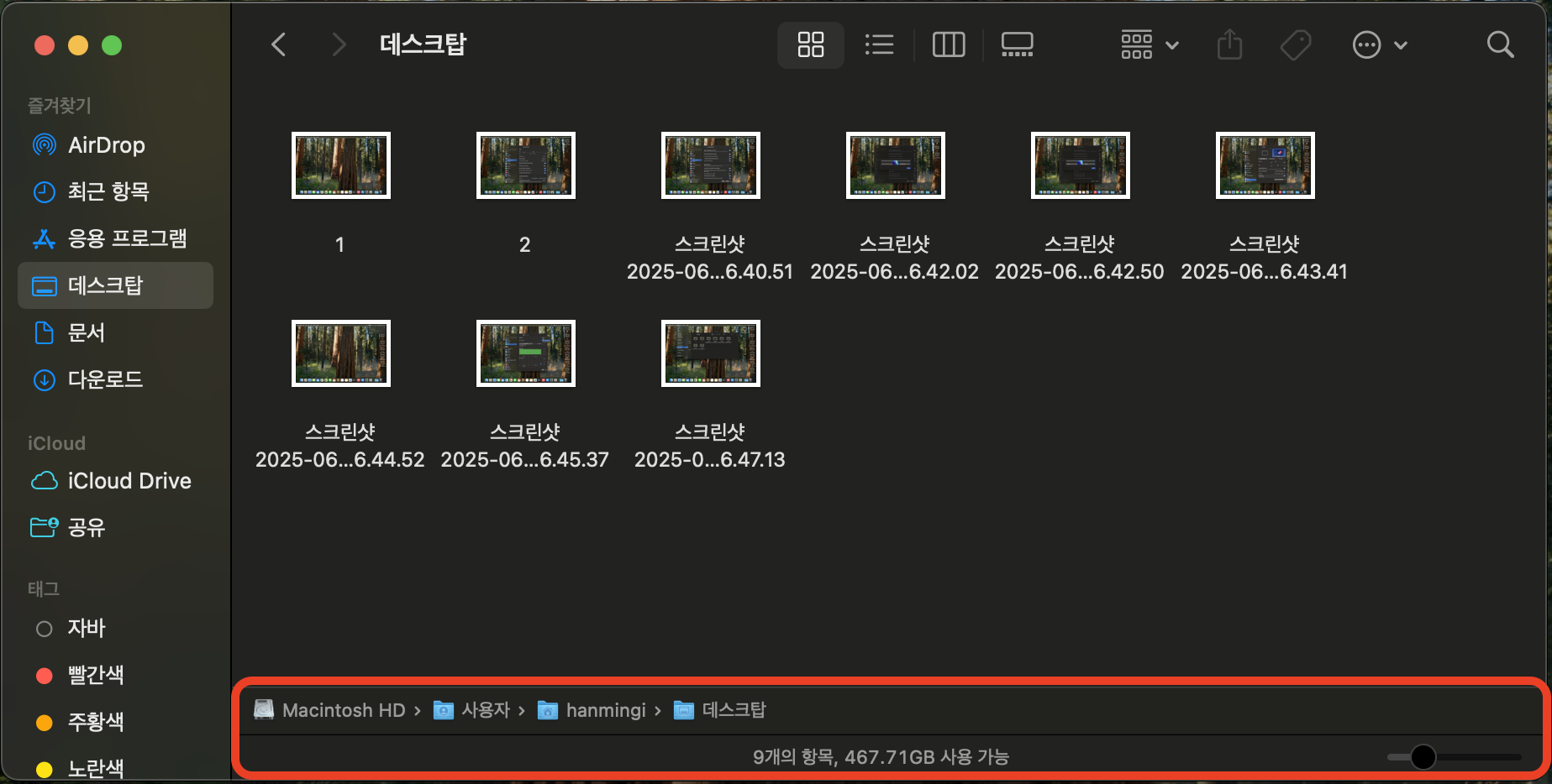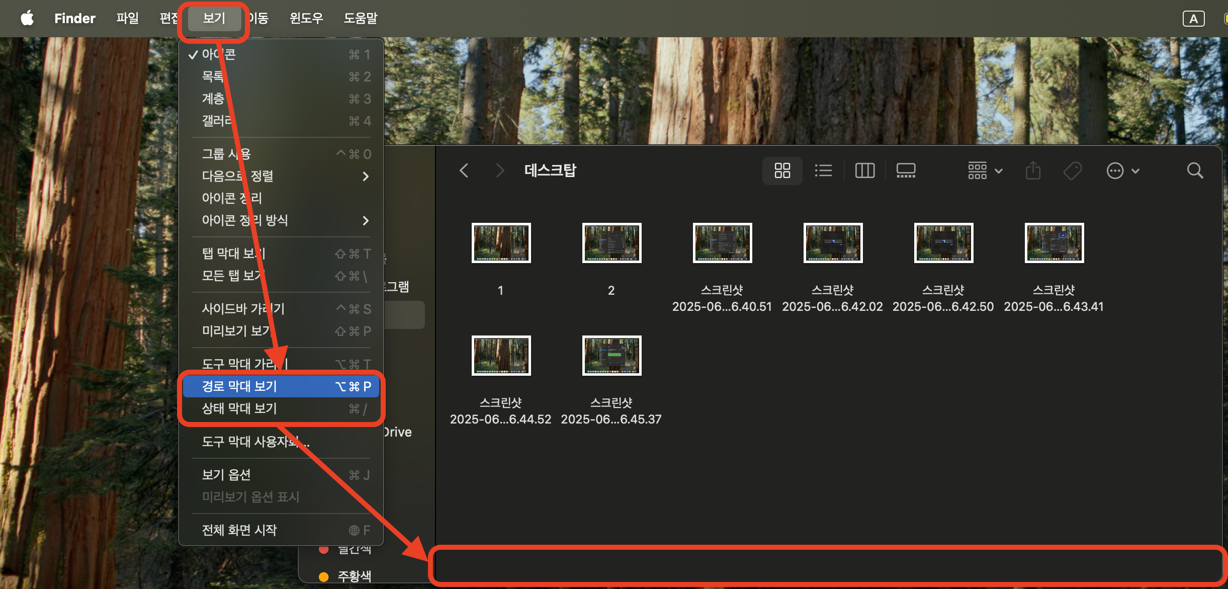 📁 6. Finder 설정 – 경로 막대 / 상태 막대 표시
